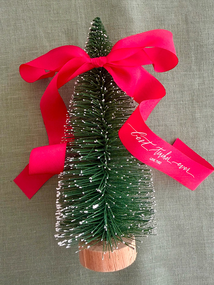 These sweet ornaments are perfect to commemorate your favorite moments from 2025. Maybe it’s “Baby’s First Christmas”? Maybe “We’re Engaged”? Maybe someone is expecting a baby? Maybe you just want to celebrate your family as it stands this year? They also make great teacher presents, personalized from your kids. These bows can even be used to decorate a gift, and then hung on the tree for years to come.